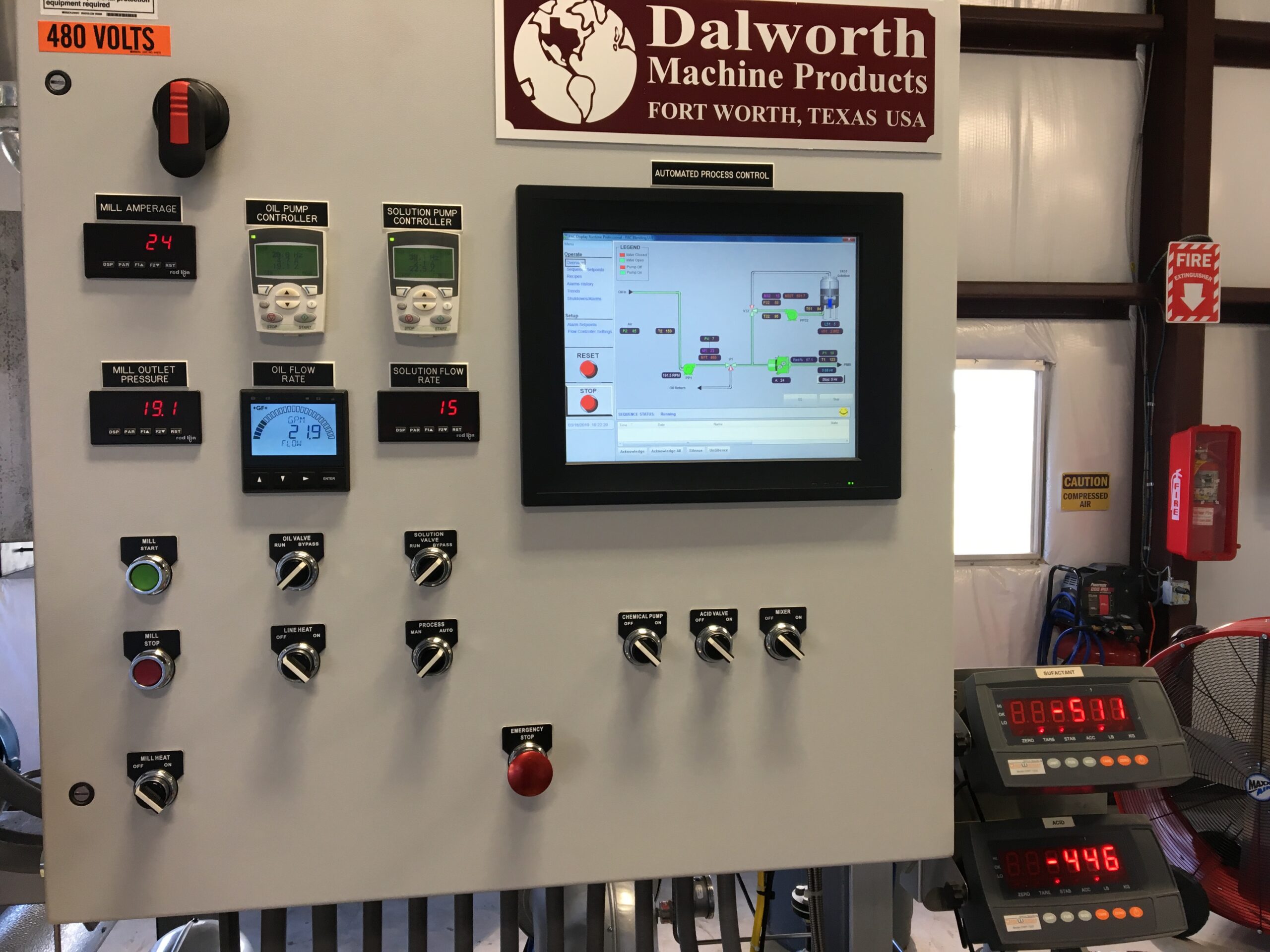 This Emulsion Plant offers preprogrammed processes that allow our Plant Operations to perfect the exact Operating Procedures required to mix and blend the Proprietary emulsion recipes to produce the exact required Specifications day in and day out. This level of quality provides a consistency of performance in our cationic emulsions to our Customers. The Plant meters and weighs all the oils, surfactants, acids, water, then heats to required temperatures and passes the product through an ultra-high speed colloid mill with a cationic charge. The Plant can produce up to 4 000 gallons per hour and has over 50 000 gallons of Storage capacity .